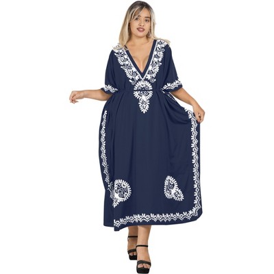 LEELA Womens Summer Holiday Beach Casual Dailywear Elegant Maxi Kaftan Dress Caftan Loungewear Dashiki House Dresses for Women 3X-4X Blue, Tree