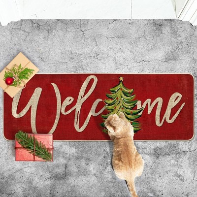 Lomsoe 1pc Black Xmas Tree Christmas Long Welcome Doormat, Winter Home Decor Rug Door Mat Floor Mat for Indoor Outdoor.