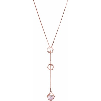 Pavilion Gift Company - Rose Water Opal - Rose Gold Hexagon - 18.5" Austrian Crystal Sweater Necklace - Necklaces