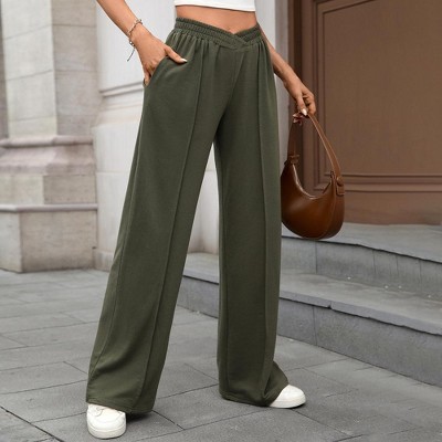 Womens Wide Leg Stretchy Straight Pants Ribbed Textured Slacks Trousers Pull On Lounge Pants Waist Drawstring Yoga Pants