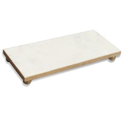 Classic Touch 14" White Marble Oblong Tray with Gold Beaded Edge