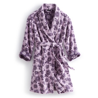 Casual Nights Women's Button Front Jacquard Terry Fleece Lounger Robe with Pockets