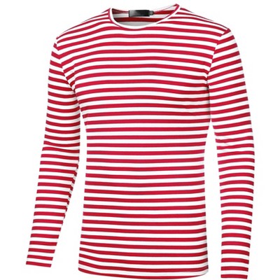 Lars Amadeus Men's Long Sleeves Crew Neck Striped Basic T-Shirt
