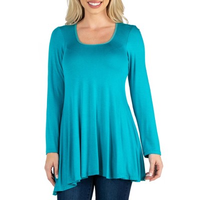 24seven Comfort Apparel Womens Long Sleeve Solid Color Swing Style Flared Tunic Top