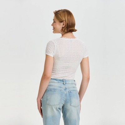 Women's Short Sleeve Jacquard Knit Boho Lace Top - Wild Fable™