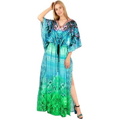 Slickblue Plus Size Print Drapy Shirt Maxi Dress, Elegant Royal Multi/Teal Print, Comfortable Fit, 1XL-3XL