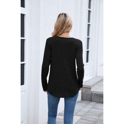 Garvee Women's Long Sleeve T Shirts V Neck Textured Knit Tops Casual Loose Fit Blouse Lightweight Soft Pullover Tunics for Spring/Fall
