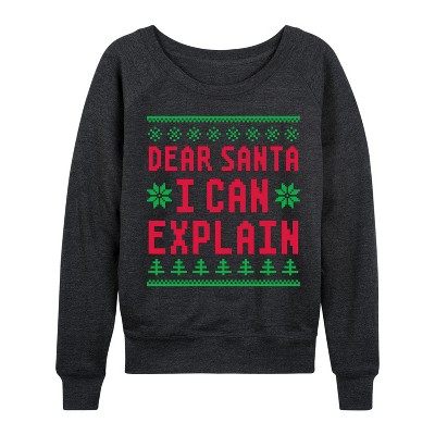 Women's - Instant Message - Mama Claus Varsity Lightweight French Terry Wide Neck Long Sleeve Graphic Shirt