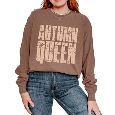 Autumn Queen Block Distressed - Women's Garment Dyed Long Sleeve Graphic T-Shirt