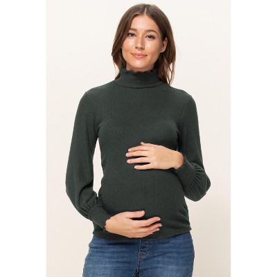Hello Miz Women's Ribbed Knit Long Sleeve Maternity Turtleneck Sweater