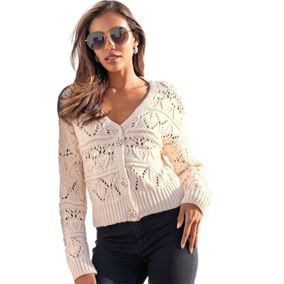 Women's Diamond Open Work Knit Cardigan - LASCANA