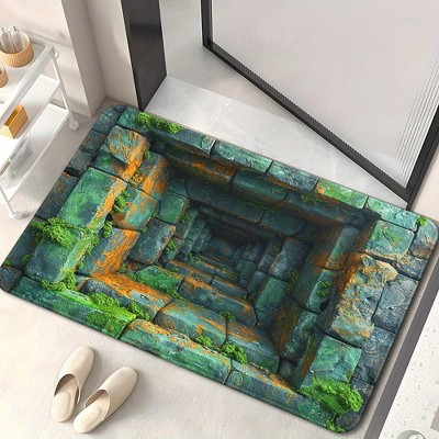 Lomsoe 1PC 3D Mysterious Stairway Flannel Floor Mat- Non-Slip Water Absorbent Optical Illusion Design, Realistic Stone Step Pattern.