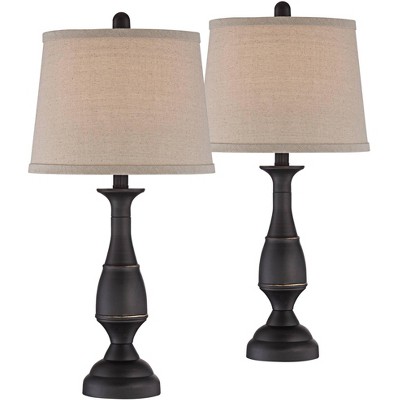 VEVOR Table Lamps Set of 2, Dimmable Farmhouse Bedside Nightstand Lamps, Vintage Lamp with LED Bulb and Linen Shades,White