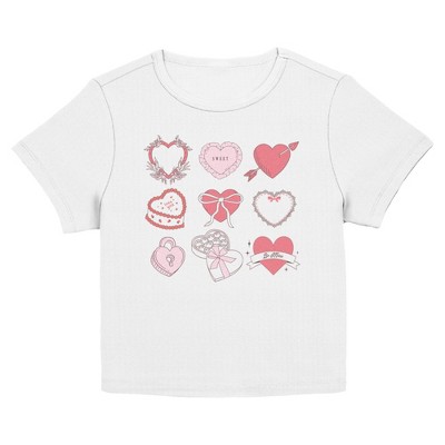Juniors Womens Lost Gods Cute Hearts Grid T Shirt