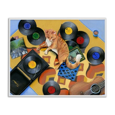 Stupell Industries Cat & Vintage Record Player Framed Giclee Art