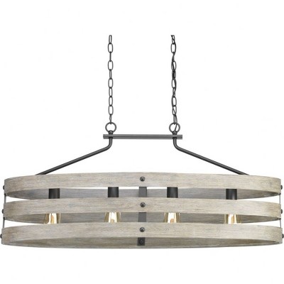 Progress Lighting Gulliver 4-Light Linear Chandelier, Graphite, Open Design, Galvanized with Antique White Accents, Wood Grained Texture