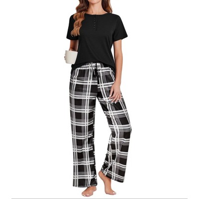 Anna-Kaci Lounge Women's Short Sleeve Sleepwear Set with Mini Bow Print and Decorative Button Details