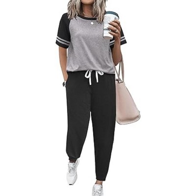 Ekouaer Lounge Sets for Women Two Piece Pajama Set Short Sleeve Crewneck Jogger Outfits and Sweatpants Tracksuit