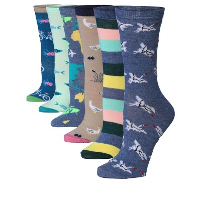 Tipi Toe Women's 6-Pairs Colorful Funky Adventure & Nature Patterned Crew Dress Socks
