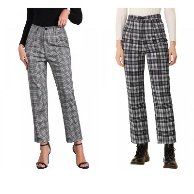 INSPIRE CHIC Women's Plaid Tartan High Waisted Button Casual Pants 2 Packs