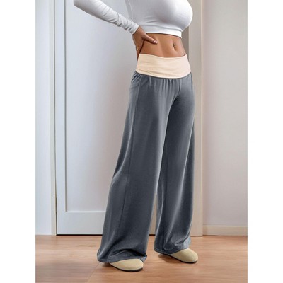 Women's Wide Leg Stretchy Ribbed Pants Pull On Lounge Trousers Drawstring Waist Yoga Textured Slacks