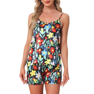 cheibear Women's Silky Camisole Top and Shorts Satin Pajamas Sets 2 Packs