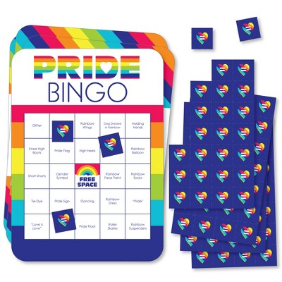 Big Dot of Happiness Love is Love - Pride - Bar Bingo Cards and Markers - Rainbow Party Shaped Bingo Game - Set of 18