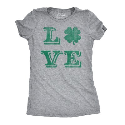 Womens LOVE Lucky Clover St. Patrick’s Day Cute Green St. Paddys Shamrock T Shirt - Crazy Dog Women's T Shirt for Saint Patrick's Day