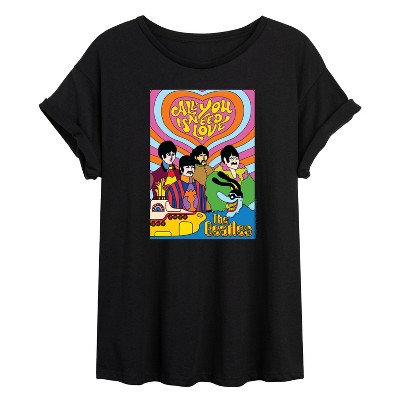 Women's - The Beatles - All You Need Is Love Oversized Graphic T-Shirt