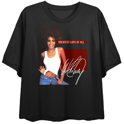 Whitney Houston Greatest Love Of All Crew Neck Short Sleeve Women's Black Crop T-shirt