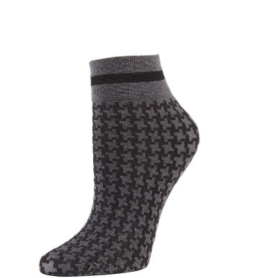 Memoi Women's Classic Houndstooth Print Stretchy Anklet Sock Med Gray Heather One Size