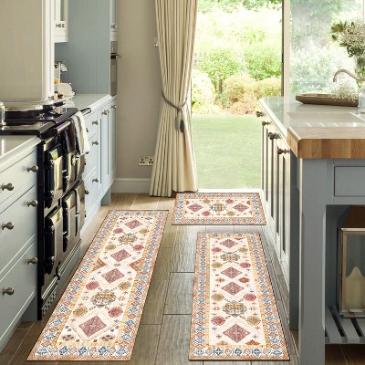 Kitchen Rugs 3 Piece Set,Non Slip Machine Washable Kitchen Mats,Boho Vintage Kitchen Carpet