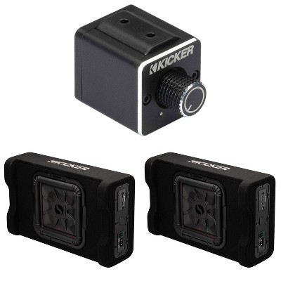 Kicker (2) 53PL7TDF10 10" L7TDF Powered Down-Firing Subwoofer Enclosures with Dual Bass Remote Knob – Thin Profile Loaded Truck Bass System