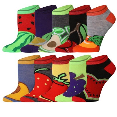 Tipi Toe Womens 10 Pairs Fruitful Kaleidoscope Pattern & Mix Colors For Vibrant Style Low Cut/No Show Socks
