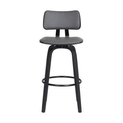 HomeRoots 30" Gray And Black Faux Leather Swivel Low Back Bar Height Bar Chair