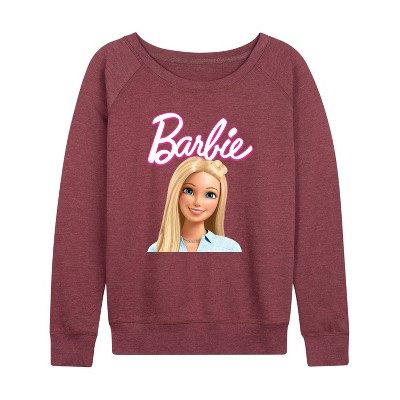 Women's - Barbie - Original Barbie Doll Lightweight French Terry Wide Neck Long Sleeve Graphic Shirt