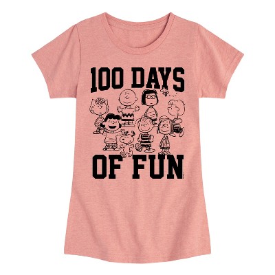 Girls' - Peanuts - 100 Days Of Fun Fitted Short Sleeve Graphic T-Shirt