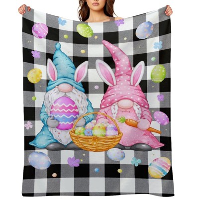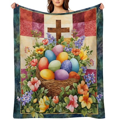 Lomsoe 1pc Easter Pattern Flannel Throw Blanket, Happy Easter Spring Holiday Watercolor Throw Blanket for Sofa Couch Bed and Living Room.