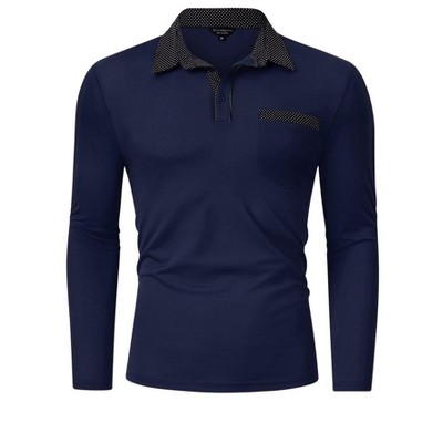 Mens Long Sleeve Polo Shirts Casual Polka Dot Collared Golf Shirt with Pockets