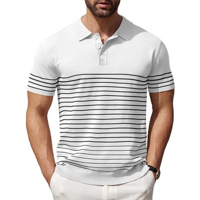 COOFANDY Men's Knit Polo Shirts Short Sleeve Striped Golf Polo Shirts Lightweight Casual Collared T Shirt
