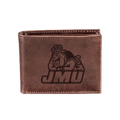 Evergreen NCAA James Madison Dukes Brown Leather Bifold Wallet Officially Licensed with Gift Box