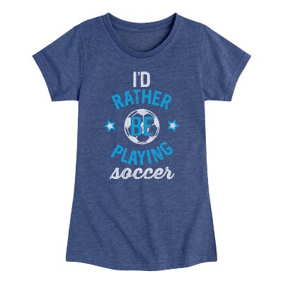 Girls' - Instant Message - I'd Rather Be Playing Soccer Boy Fitted Short Sleeve Graphic T-Shirt