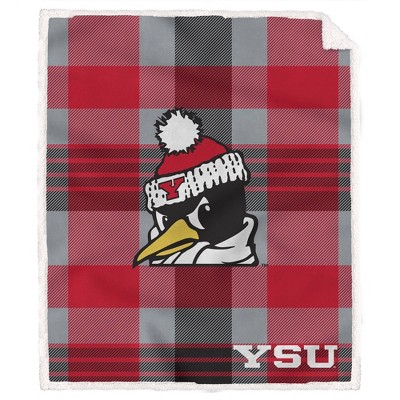 NCAA Youngstown State Penguins Plaid Steel Royal Plush Faux Shearling Blanket