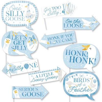 Big Dot of Happiness Funny One Silly Goose Blue Photo Booth Props Kit, Goose-Themed Puns for Boy 1st Birthday Supplies - 10 Count Selfie Prop Sticks