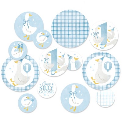 Big Dot of Happiness One Silly Goose Blue Large Confetti, Boy 1st Birthday Party Table Decorations, Giant Confetti Centerpiece - 27 Count Circles