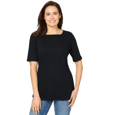 Woman Within Ribbed Square Neck Elbow-Sleeve Tee