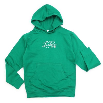 Simply Sage Market Women's Graphic Hoodie Cursive Lucky Clover