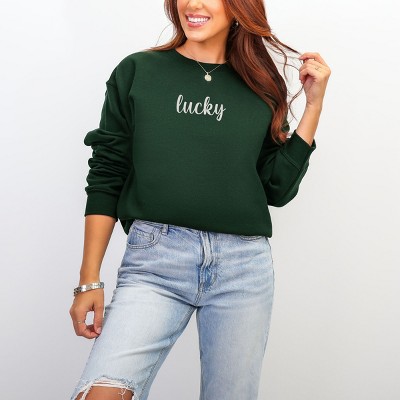 Embroidered Lucky Cursive - Women's Graphic Sweatshirt