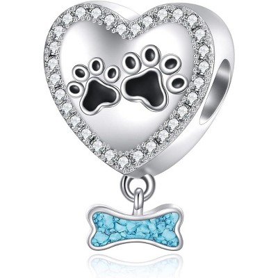 Sterling Silver Paw Print Charm - Dog Heart & Turquoise Bead for Bracelets, Animal Lover Gift