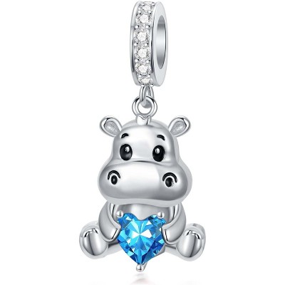 Sterling Silver & Crystal Blue Sea Turtle Dangle Charm, Murano Glass Jewelry Gift for Women